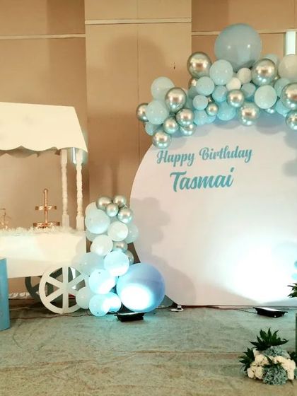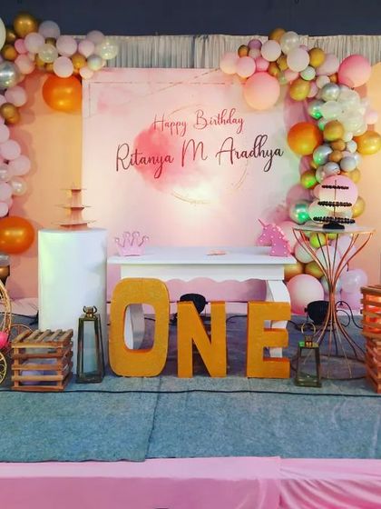 We design and set up custom themed birthday decorations with backdrops, balloon arches, props, and personal touches like name cutouts and milestone displays.