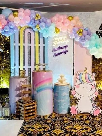 I specialize in creating magical fantasy worlds for birthdays, with unicorn, butterfly, and mermaid themes being my most requested designs. Each setup features custom props, vibrant balloon arrangements, and personalized backdrops to bring the fantasy to life.