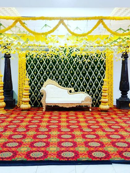 Haldi & Ceremony Decor - We create Haldi ceremony setups, mantap designs, stage backdrops, and fun photo booths.