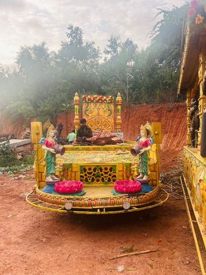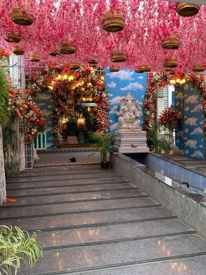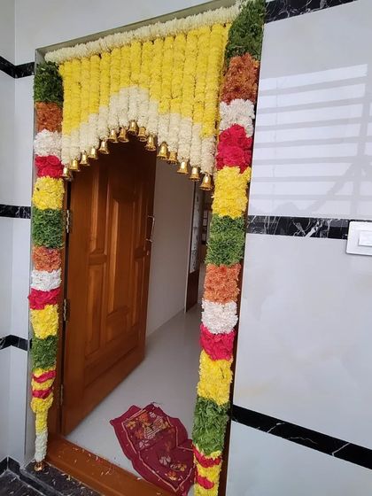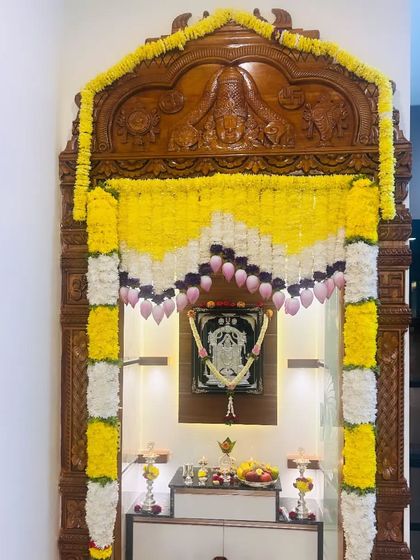 We do custom religious and temple decoration for home poojas and large festivals, using fresh flowers and traditional materials for authentic setups.