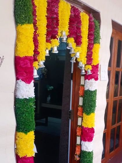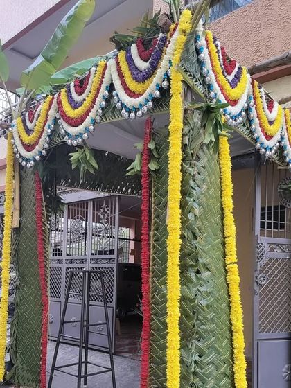 We provide decorations for all occasions: birthdays, weddings, corporate events, and temples. Our specialty is traditional and temple festival decor, handling everything from a simple garland to a grand stage setup.