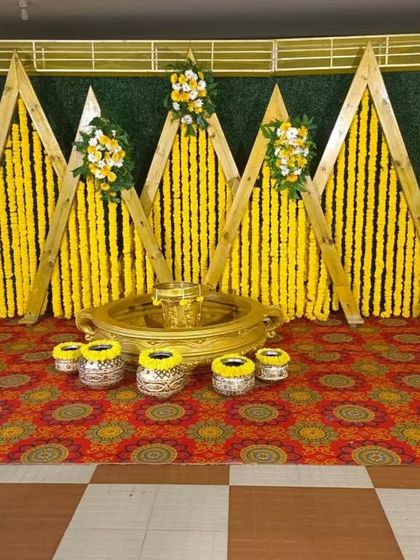 I design vibrant and personalized decor for all your pre-wedding functions. This includes traditional Haldi and Mehandi setups with marigolds and colorful themes, as well as beautiful backdrops for baby showers (Seemantham) and bridal showers.