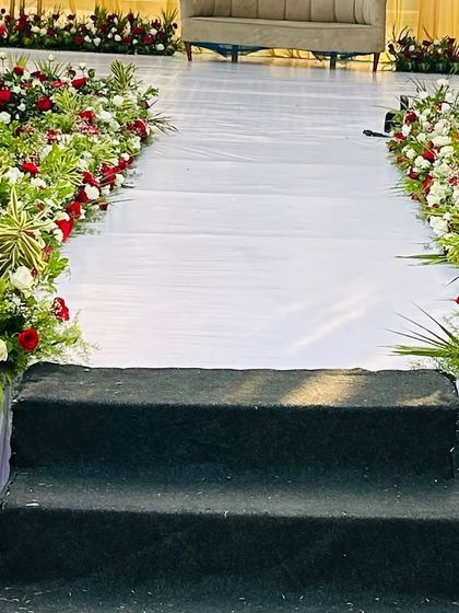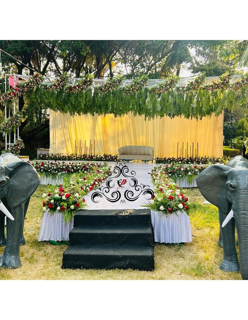 I transform outdoor spaces into breathtaking venues for your destination engagement or wedding. My services include arranging elegant guest seating, designing stunning open-air stages, and incorporating unique props like elephant statues for a grand touch.