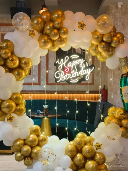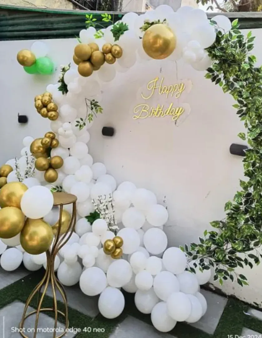 My circular ring backdrops are a modern and stylish choice for any birthday celebration. I can customize them with any color of balloons, neon signs, and other elements to create the perfect centerpiece for your party.