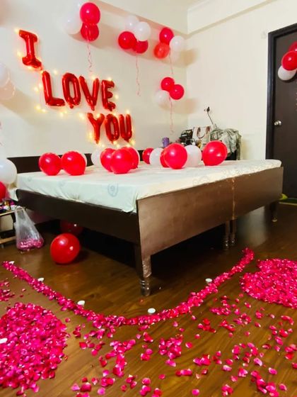 We set up romantic decorations for anniversaries, proposals, and just married moments using balloons, fairy lights, rose petals, and custom touches in any space you choose.