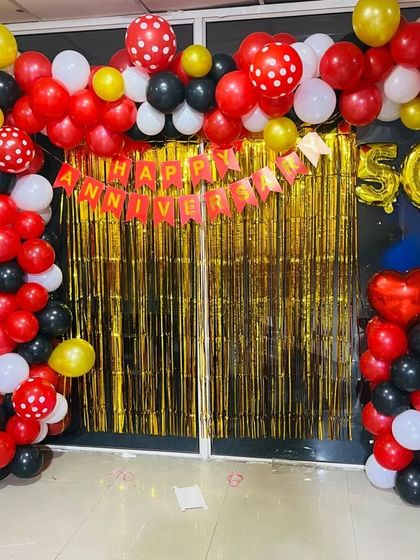 I create stunning backdrops for anniversaries that are perfect for photos and cake cutting ceremonies. These include large balloon rings and arches, custom neon signs, and marquee numbers to celebrate your milestone, whether it's your 1st, 9th, or 50th.