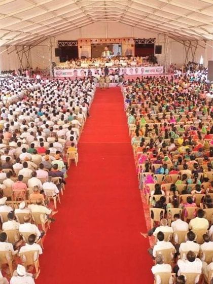 Our infrastructure services extend beyond weddings to accommodate massive public gatherings, including political rallies and corporate functions. We provide large-scale German hanger tents, staging, and seating arrangements for audiences of up to 8000 people.