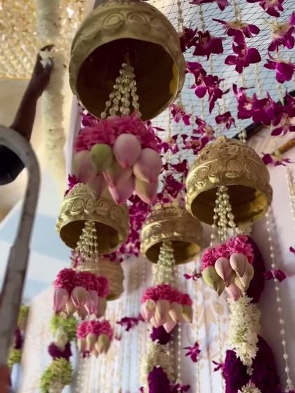 For a Seemantha, Haldi, or Naming Ceremony, I blend timeless tradition with beautiful aesthetics. We use auspicious elements like banana leaves, lotus flowers, and temple bells, and combine them with custom-fabricated props and lush floral arrangements to make your family's habba truly special.
