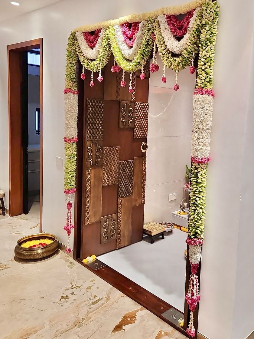 Beauty is not just for grand venues. I put the same love and detail into decorating homes for festivals and small poojas. Whether it's an intricate floral 'tomale' for your doorway for Varamahalakshmi habba or a complete setup for a small ceremony at home, I can make any space feel special and festive.