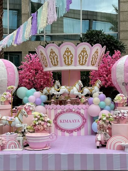 We handle complete themed birthday party decoration with custom backdrops, props, balloon garlands, and full venue setup so you can enjoy the party without any hassle.