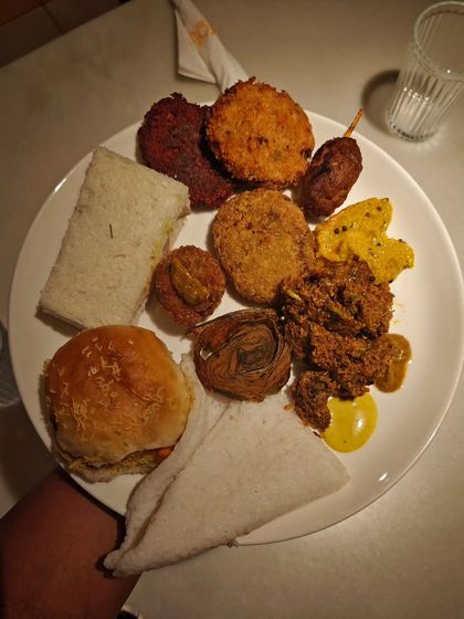 Before the main course, there's always time for some maazedaar snacks. I serve classic Maharashtrian nashta like crispy Kothimbir Wadi, spicy Misal Pav, and various kebabs and chops that I learned from my Aai and friends.