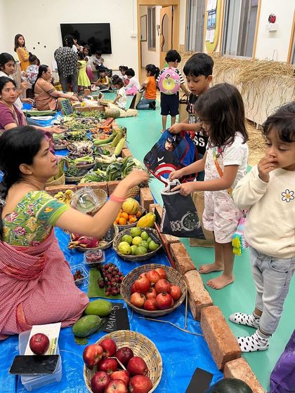 Hands-on Montessori Activities - Kids get messy making bhel puri, fruit salad, tie-dye, and even run their own Market Day stalls.
