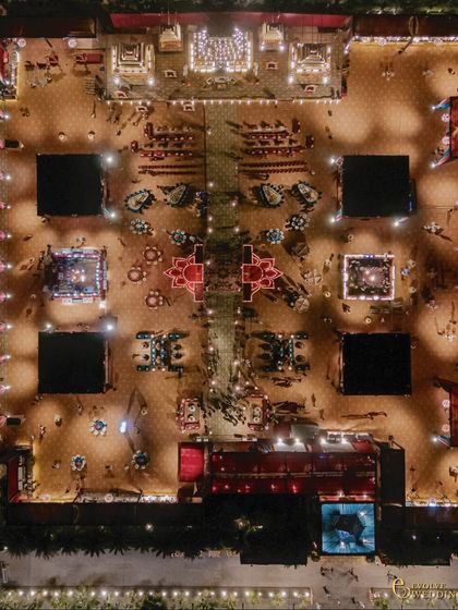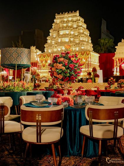 We’re Evolve Weddings. We don’t just set up a venue, we build a story. Our vibe? Think Mysore Palace, Sufi courts, Meenakshi Mandir - places that have heart, not just looks. Every project gets a name, a soul, and we go deep, from hand-making stained glass ceilings to tossing haldi and chillies in the flowers for hifazat (protection). It’s all about mixing devotion with design, so every corner feels like a verse in your own poem.