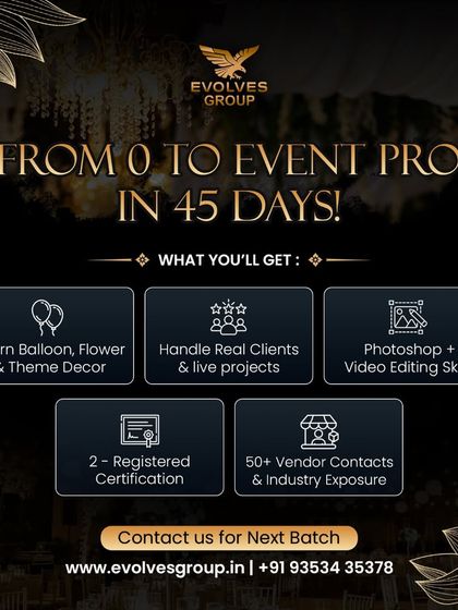 We teach event management with a full mix of theory, hands-on practicals on real events, vendor management, and give you two certifications along with personal support and a vendor database.
