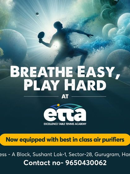 Air Purified Table Tennis Academy - Play hard, breathe easy—our Sushant Lok-1 setup has top air purifiers for a healthy environment.