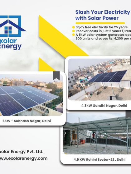 Hey, we’re Exolar Energy. Solar isn’t just work for us, it’s kinda personal. Delhi gets mad sunshine, right? We’re all about turning that into savings for families, steady power for hospitals, and cleaner air overall. We handle everything ourselves - no outsourcing, no shortcuts. From Rohini to Paschim Vihar, we’ve seen homes go solar and it’s awesome. We’re government-approved, and we stick around till the job’s done right.