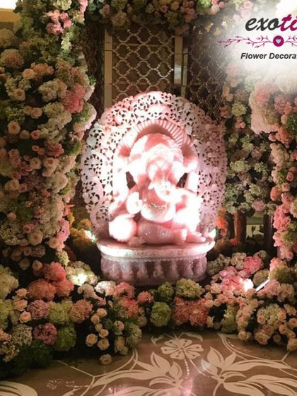 Flower Decoration Services - We do Ganpati flower decoration, weddings, baby showers, Arangetram stage decoration, home poojas, parties, and floral bouquet gifts.