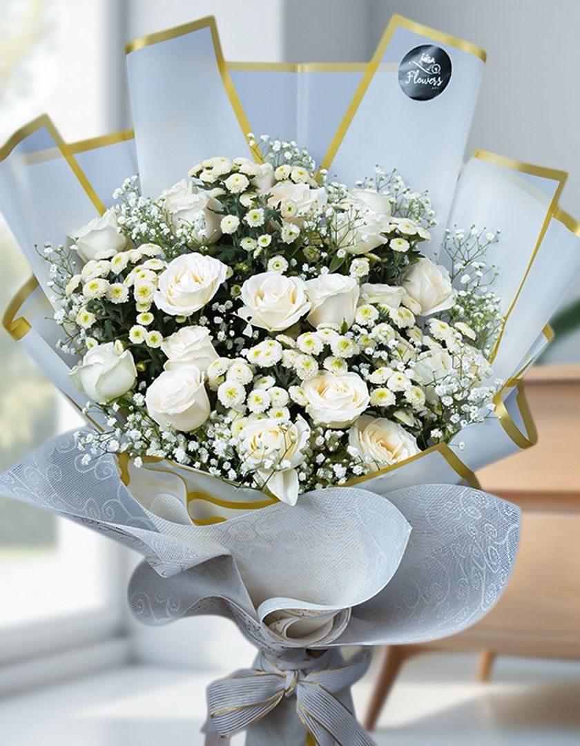 Sometimes, simple elegance is the most powerful. I select the freshest flowers and wrap them in stylish paper with a ribbon for a timeless and classic hand-tied bouquet, perfect for any occasion.