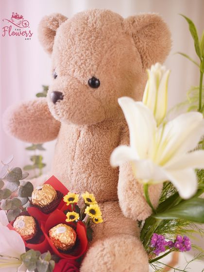 Go beyond just flowers with a complete gift experience. My hampers combine beautiful floral arrangements with extras like soft teddy bears and premium chocolates, all presented in a single, delightful package.