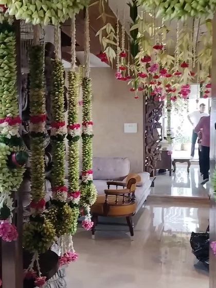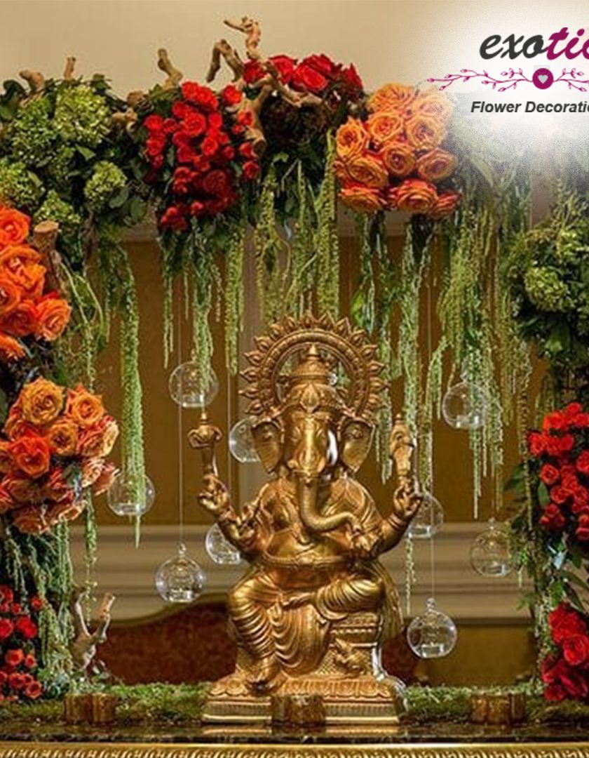 Ganpati decoration is our specialty, and we pour our hearts into creating the perfect setting for Bappa. We offer a wide variety of designs, from classic backdrops made with marigolds and roses to modern, thematic setups using exotic orchids, lilies, and even unique fruit and flower walls. Let us handle every detail so you can focus on the celebration.