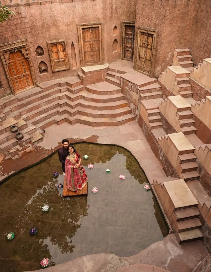 I love finding locations with history and grandeur, like ancient stepwells or palaces. These places add a timeless, royal feel to your story, making the photos feel like they are straight out of a classic film. We can shoot at stunning paid locations like 'The Perfect Location' in Faridabad or travel to a destination of your choice.