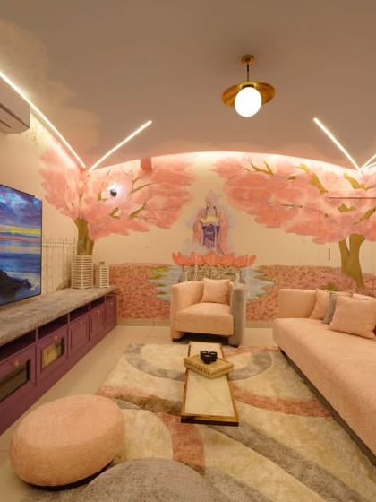 I don’t just drop in a painting and leave. I like weaving a theme through the whole place. Maybe it’s cherry blossoms everywhere - on walls, the colors, even the lights. Or maybe it’s something personal, like that one client’s Kashmir maple leaf becoming the heart of the living room. It’s all about making it yours.