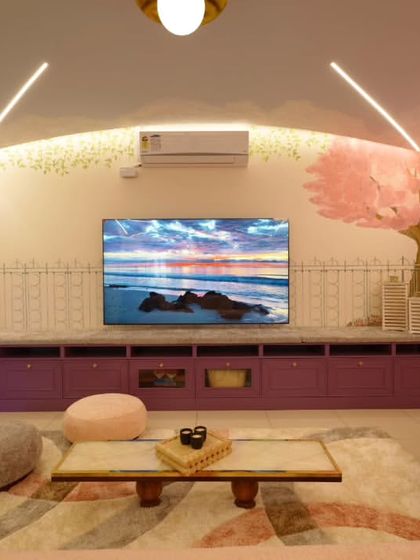 - Entertainment: Custom laminate TV unit with drawers and display ledge.