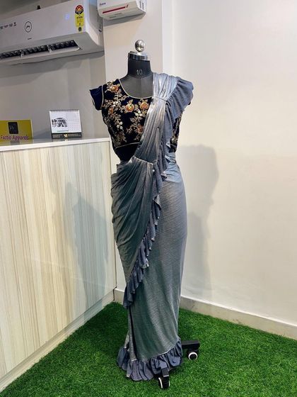 - For those who want zero hassle, my ready to wear ethnic gowns and pre-draped ruffled sarees are a hit. The saree comes with a contrasting floral blouse, so you don’t have to worry about matching.