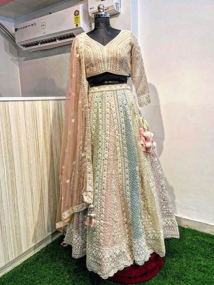 - If you want to buy bridal lehenga online or need a reception gown, I have pastel ballgowns with floral work and glam, heavily embellished pieces.