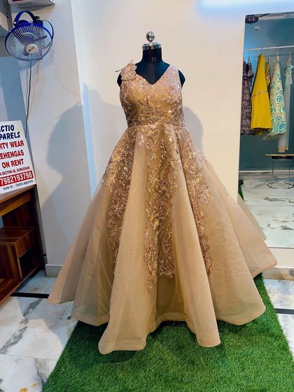 Our gowns come in various fabrics including silk, satin, and net. We offer customization services to ensure perfect fit and style preferences.