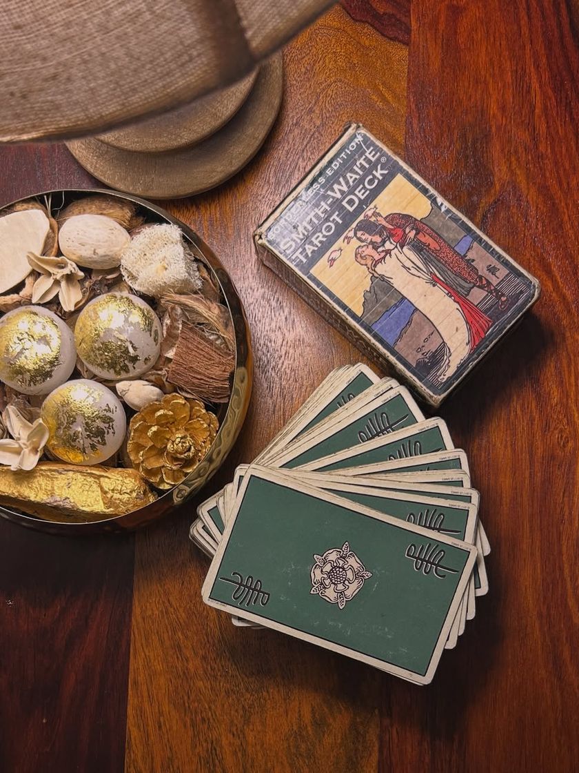 A look at the tools of my trade. Each deck has its own energy and story, from my very first one to the many others I've collected over the years. This gallery also includes the sacred items like crystals, candles, and statues that I use to create a calm and spiritually charged space for our readings.