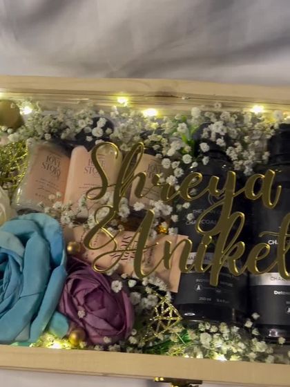 From the moment you say 'yes' to the countdown to the big day, I help you celebrate every step. I design personalized engagement ring platters, custom welcome boards for your ceremonies, and thoughtful countdown hampers.