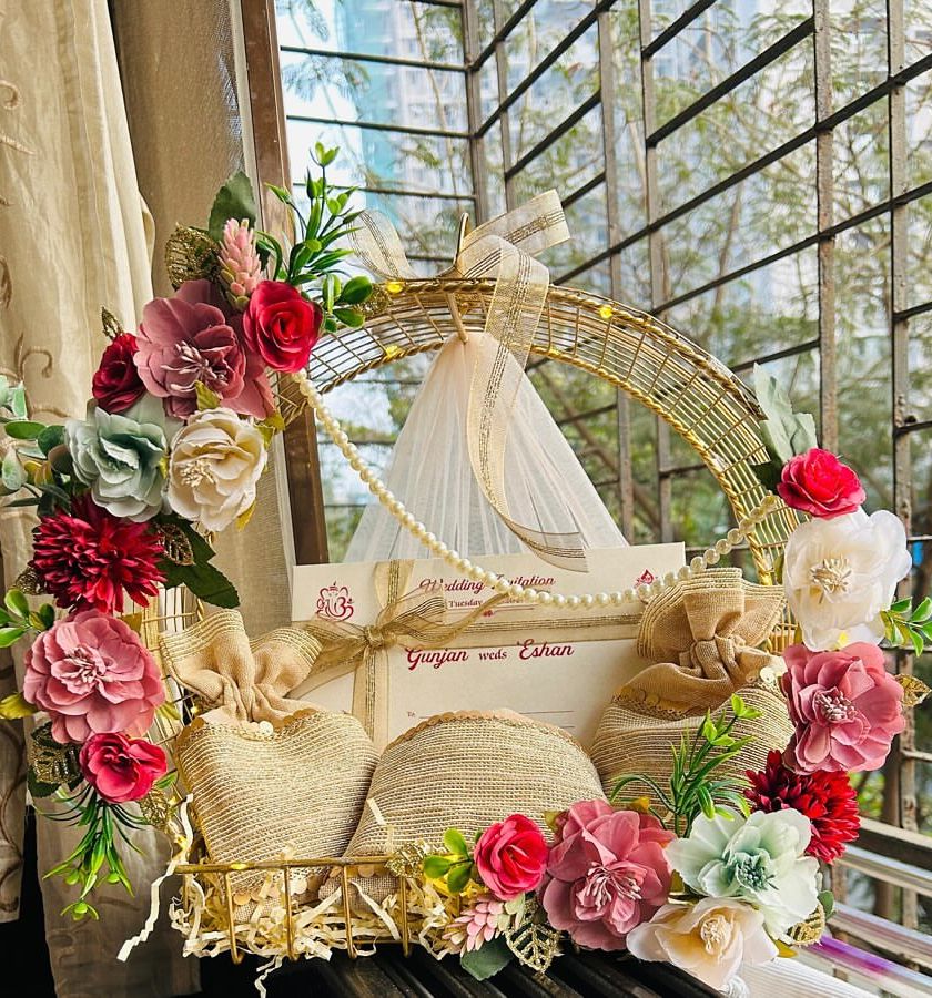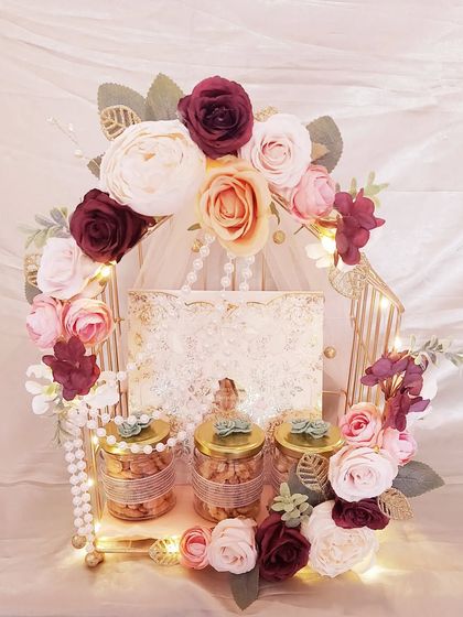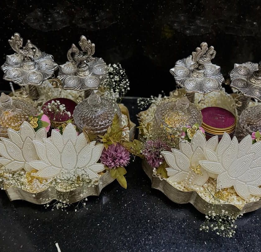 Your wedding trousseau holds a lifetime of dreams, and its presentation should be just as special. I offer creative and elegant packaging solutions, from decorated trays for sarees and suits to beautiful boxes for dry fruits, shoes, and other gifts.
