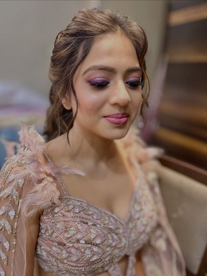 For events like engagements, Haldi, or Mehendi, I create fresh, radiant, and lighter looks. This collection features soft makeup, glowing skin, and elegant hairstyles that perfectly complement pastel, floral, and vibrant pre-wedding outfits.