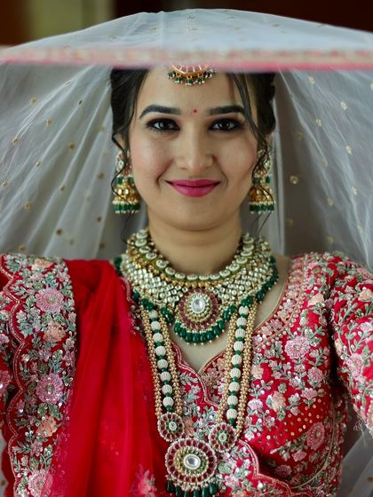 This is the heart of my work, creating classic bridal looks for the main ceremony. I focus on traditional red, pink, and ivory lehengas, paired with my signature soft glam makeup for a radiant and timeless appearance that is flawless in photos and in person.
