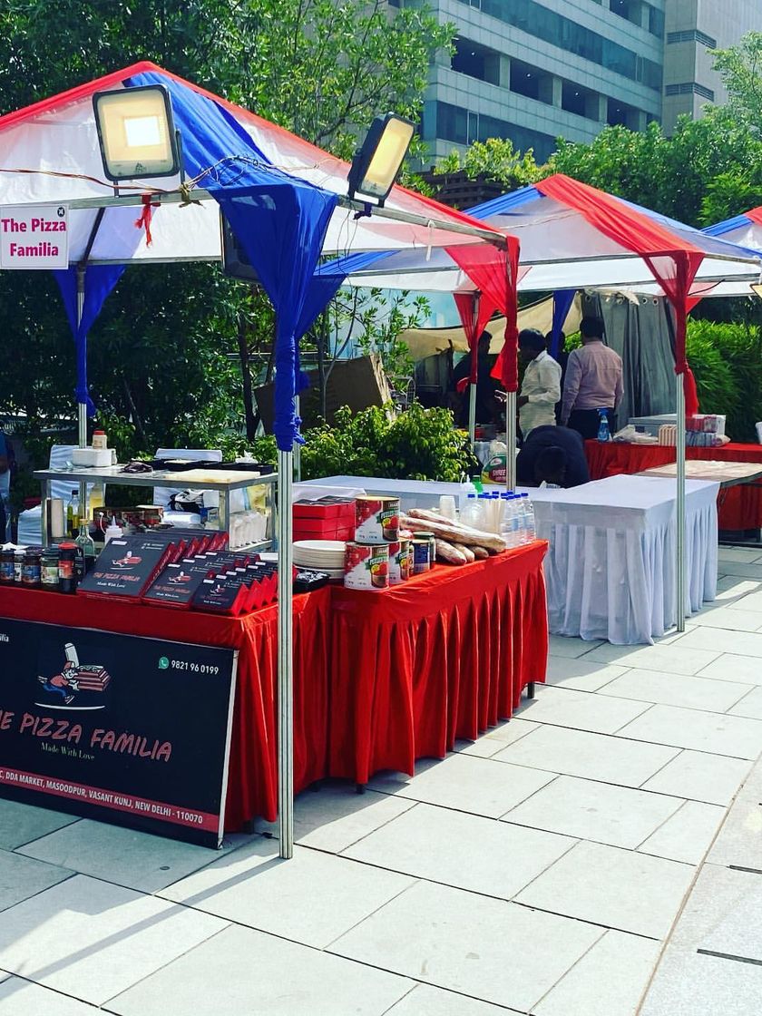 We handle everything from intimate balcony parties to large corporate events and outdoor festivals. Our professional stalls include canopies, tables, and chalkboard menus, ensuring a clean and organized setup anywhere in Delhi NCR.