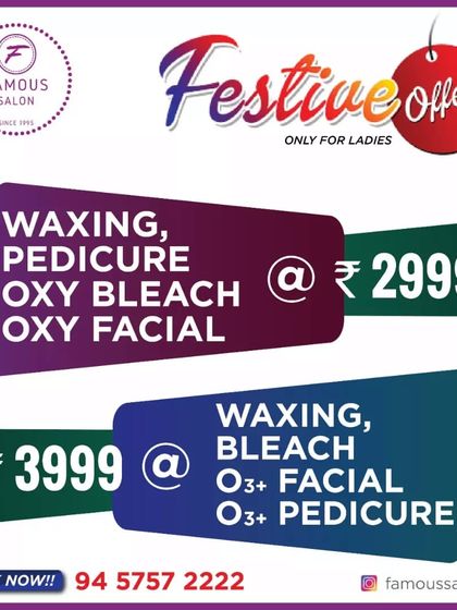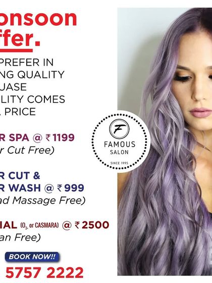 Hello ji, we're Famous Salon from Vasant Kunj, Delhi - running since 1995, two branches, full-on masti always! Renovated recently, more space, more fun. Joy is our real makeup, whether we’re glamming up a 'pahadi bride' or just giving you a new look. Festivals, laughter, and happy faces - ‘Khushiyan da chadya aaj vela ve’ (Time for happiness is here). Your smile after a makeover? Bas, that’s our real trophy.