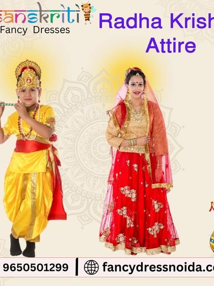 We provide a wide range of costumes for Janmashtami celebrations and mythological plays, including outfits for Krishna, Radha, and other characters. All costumes are available in bulk for school functions, temple events, and community performances.