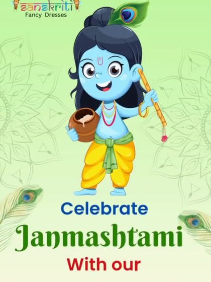 - Janmashtami Krishna costume rental is our most popular – full set with mukut, bansuri, and all.