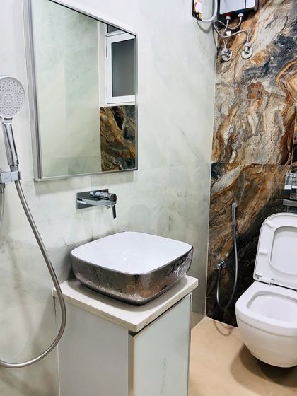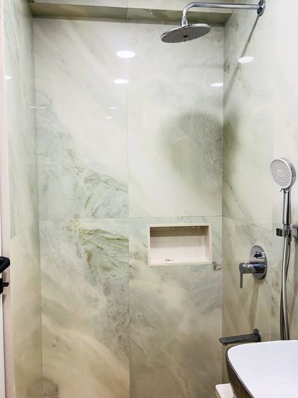 We specialize in creating luxurious bathroom interiors that blend functionality with sophisticated design. Our bathroom solutions feature modern shower setups, premium materials like marble-like finishes, and smart lighting integration.