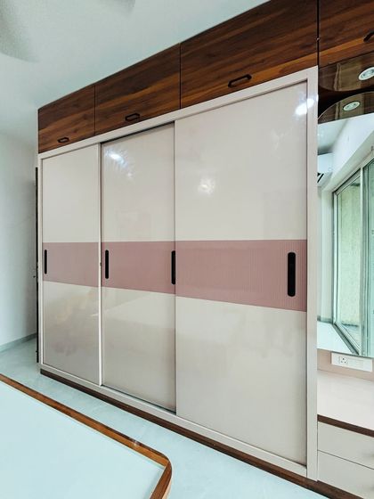 We design and build wardrobes that are more than just storage; they are a centerpiece of your bedroom. We specialize in floor-to-ceiling units with options like smooth sliding doors, classic hinged doors, and elegant glass profiles to maximize your space and match your style. Our designs often feature dual-tone finishes, geometric patterns, and integrated LED lighting for full visibility.