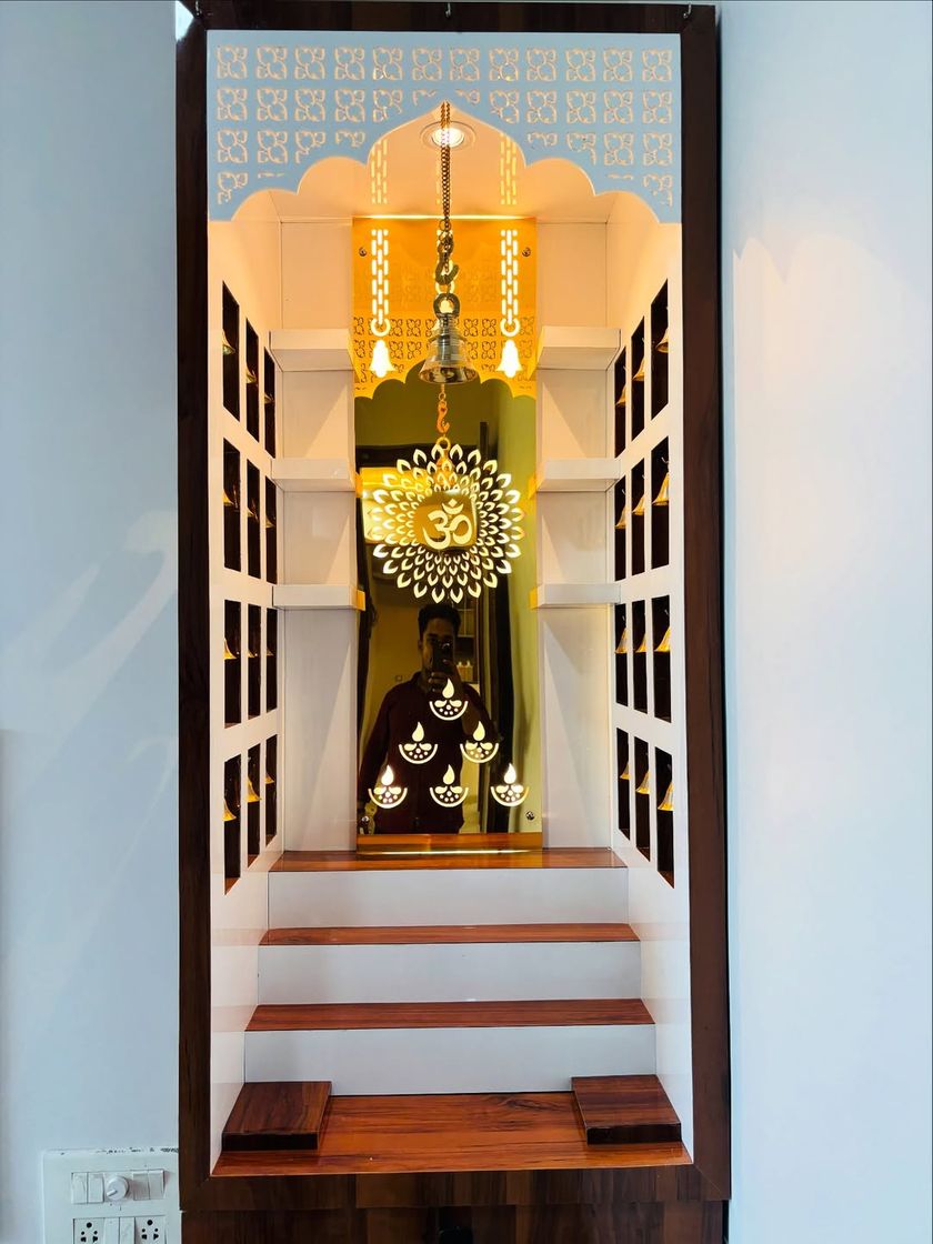 I design custom mandirs that become a serene focal point in your home. My designs range from compact units integrated with TV consoles to standalone temples with intricate jaali work, backlighting, and storage.