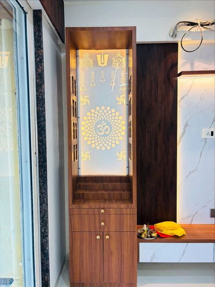 I design and build beautiful, serene mandirs that can be integrated into any room of your home. From compact wall-mounted units to larger standalone temples, each one is crafted with details like backlighting, intricate jaali work, and storage for prayer essentials.