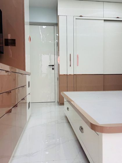 We specialize in creating modern kitchen designs that blend minimalist aesthetics with functional layouts. Our kitchens feature glossy cabinetry, integrated appliances, and innovative space-saving solutions like folding dining tables.