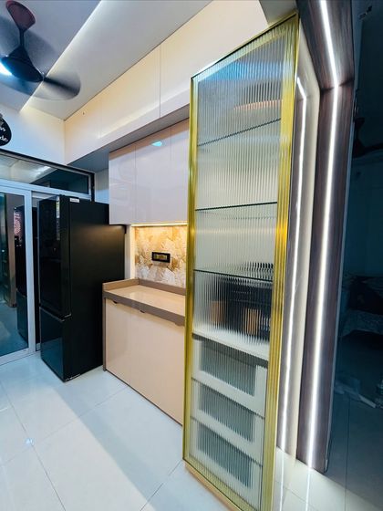 You’ll notice a modern vibe in most of my work. I love using two-tone kitchen cabinets, like a sleek dark grey mixed with glossy white. Handleless modular kitchen setups are my thing - those G-profiles keep it all looking clean. High-gloss kitchen design finishes are a favourite because they make any space feel open and premium. Sometimes I’ll add ribbed panels or glass shutters for that extra wow.