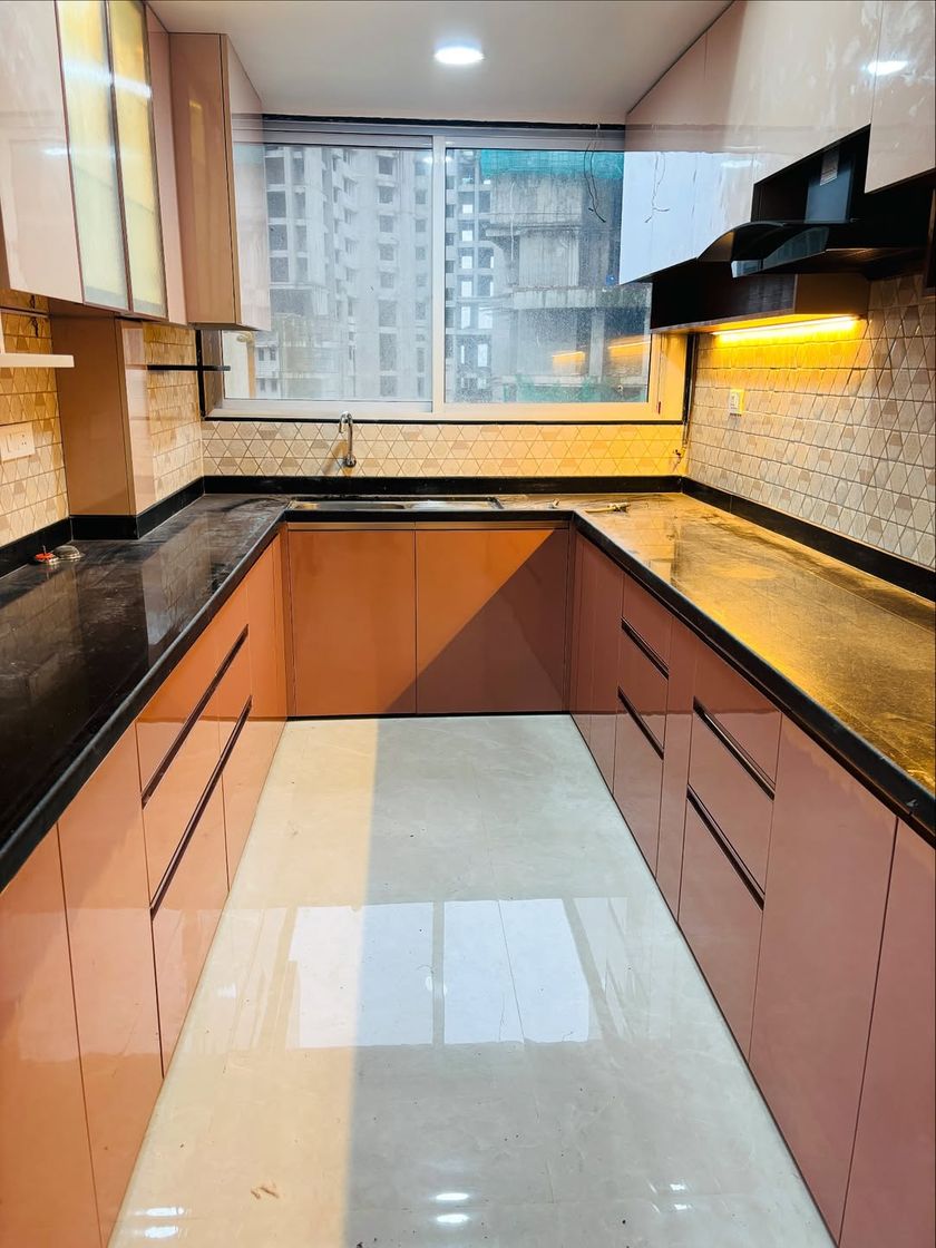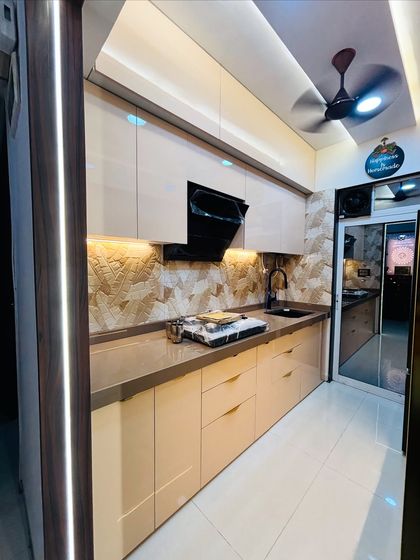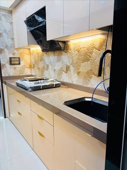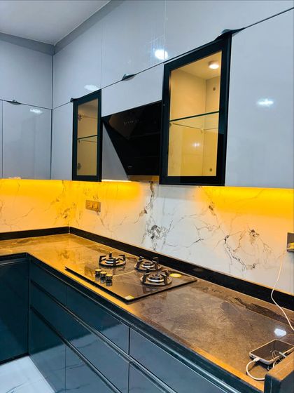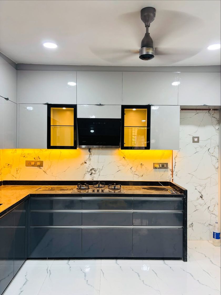 I specialize in modern two-tone designs that make kitchens feel spacious and premium. By pairing contrasting colors like dark grey with glossy white or subtle pink with cream, I create a visually dynamic space with a high-end, reflective finish.