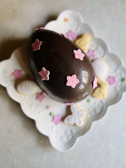 - Chocolate Shell: Large hollow egg (approx. 6-8 inches tall) made of dark or milk chocolate.