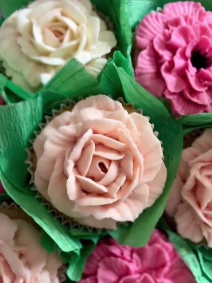 My signature offering! These bouquets look like fresh flowers but are made of delicious, hand-piped buttercream cupcakes. They are perfect for birthdays, anniversaries, or just to make someone's day, and each bouquet is fully customisable in size, colour, and flavour.