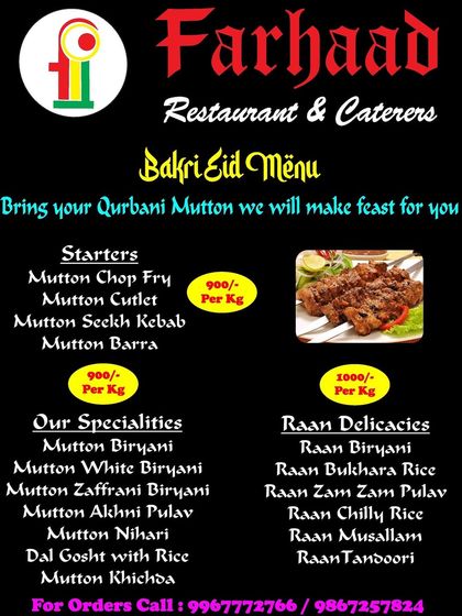 Festival & Bakri Eid Specials - Eid, Muharram, Bakri Eid - special menu. Apna Qurbani ka mutton laao, hum zabardast feast bana denge.