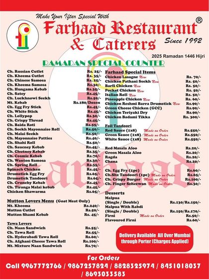 Here are all our festive menus in one place for your convenience. Plan your Ramadan Iftar or Eid Dawat ahead of time by browsing our offerings for different occasions and box sizes.
